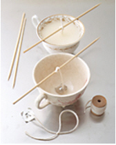 Se taie o bucatica de sfoara, cam de doua ori cat inaltimea cescutei. Unul dintre capetele sforii se leaga de bat si se aseaza deasupra cescutei.